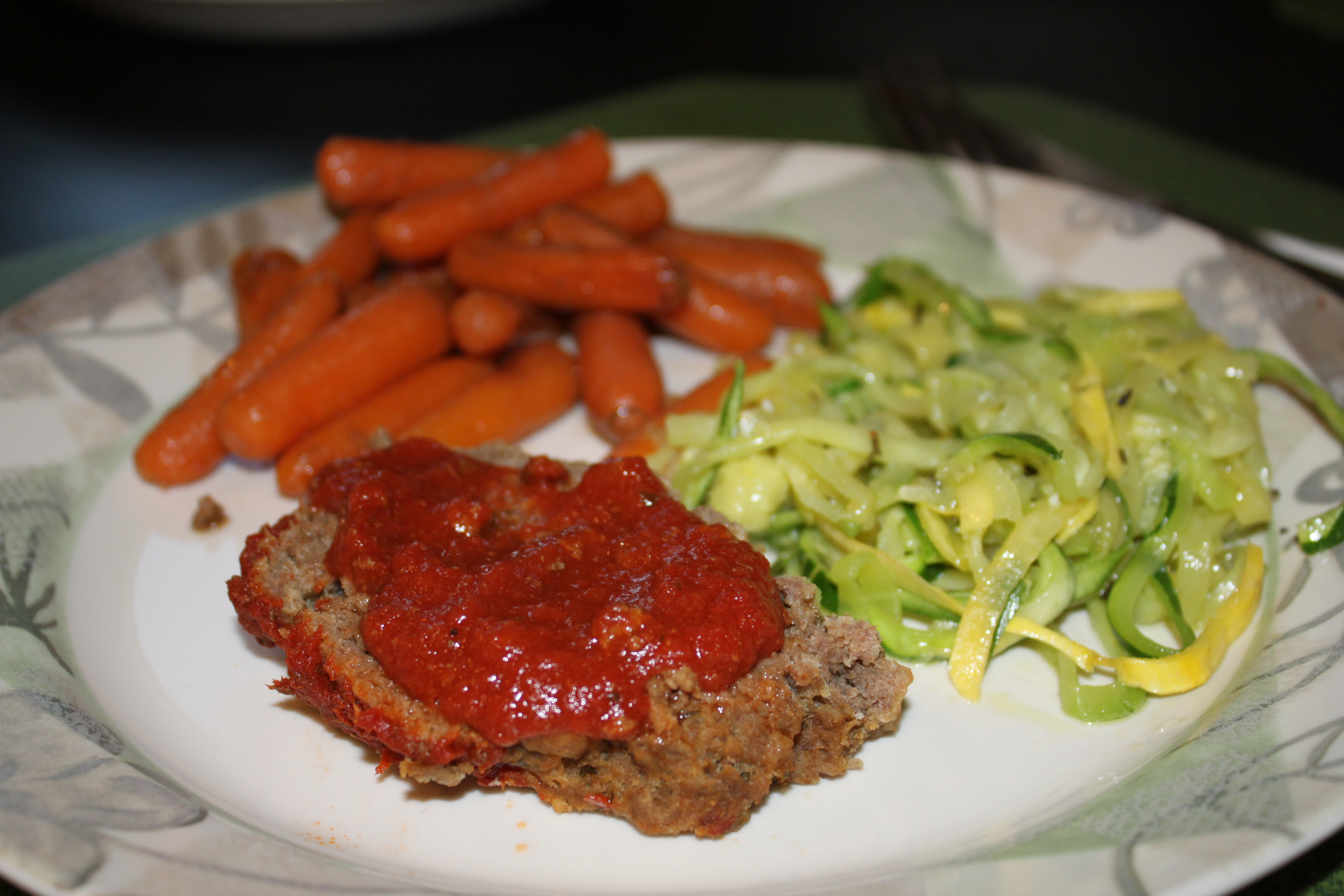 If I want a complete meal I sometimes add carrots and potatoes around the meatloaf. I will usually add 1/4 cup of water to the bottom of the crock pot so the veggies don’t burn.
