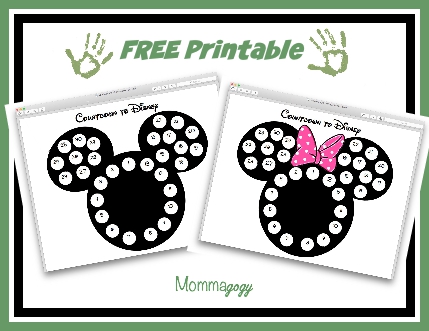 This countdown uses the small circle stickers that you would use at a yard sale for labeling that you can get at the dollar store or Walmart. The stickers come in bright colors or white, but you can color them black if you want to have a solid Mickey or Minnie when you are done. The days are numbered so you can work on number recognition if you have little ones. This will take you 5 minutes to make and will save you tons of time explaining when you are going.